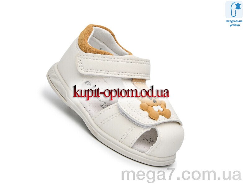 Цвет: бежевый; Материал изделия: искусственная кожа; Размерная сетка: 18-23; Материал подкладки: текстиль; Материал подошвы: пвх; Страна: Китай; Размер (на фото): 18; Сезон: лето; Пол: дети; Тип: девочка; Материал стельки: натуральная кожа;
