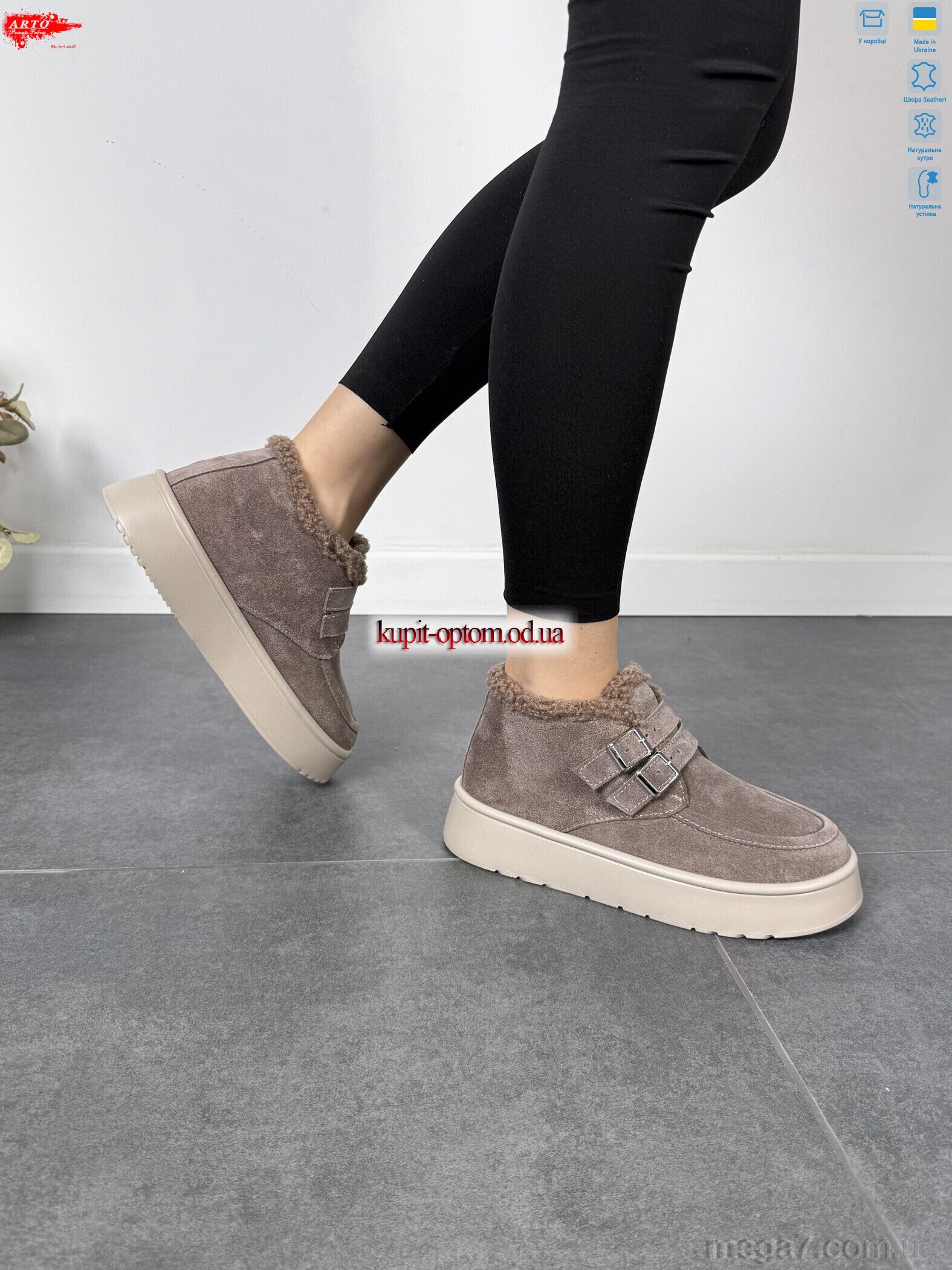 Цвет: коричневый; Материал изделия: натуральная замша; Размерная сетка: 37-41; Материал подкладки: натуральный мех; Материал подошвы: пена; Страна: Украина; Высота платформы: 4; Размер (на фото): 37; Сезон: зима; Пол: женщины; Материал стельки: натуральный мех; Коробка: да; Фото поставщика: да;