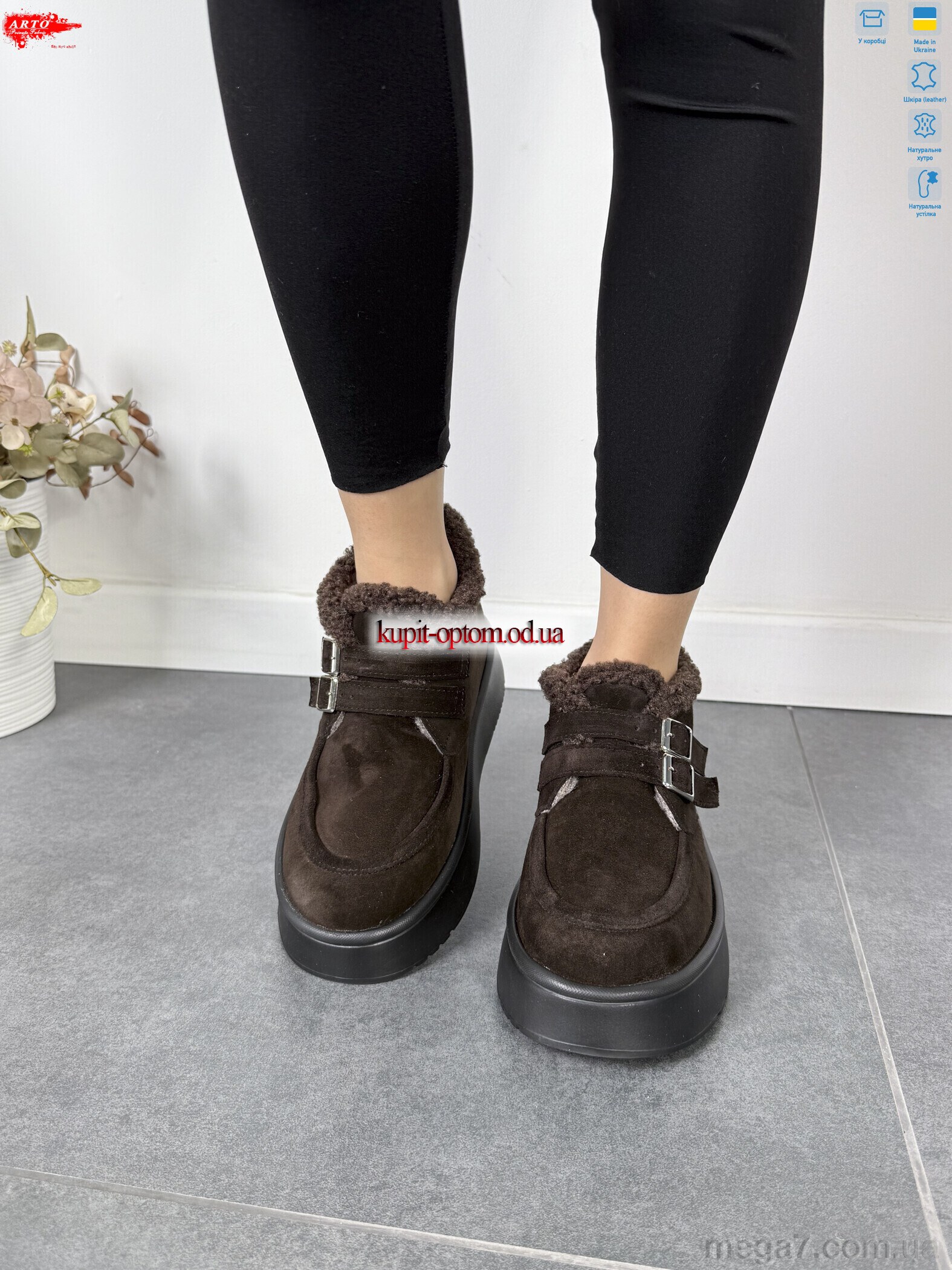 Цвет: коричневый; Материал изделия: натуральная замша; Размерная сетка: 37-41; Материал подкладки: натуральный мех; Материал подошвы: пена; Страна: Украина; Высота платформы: 4; Размер (на фото): 37; Сезон: зима; Пол: женщины; Материал стельки: натуральный мех; Коробка: да; Фото поставщика: да;