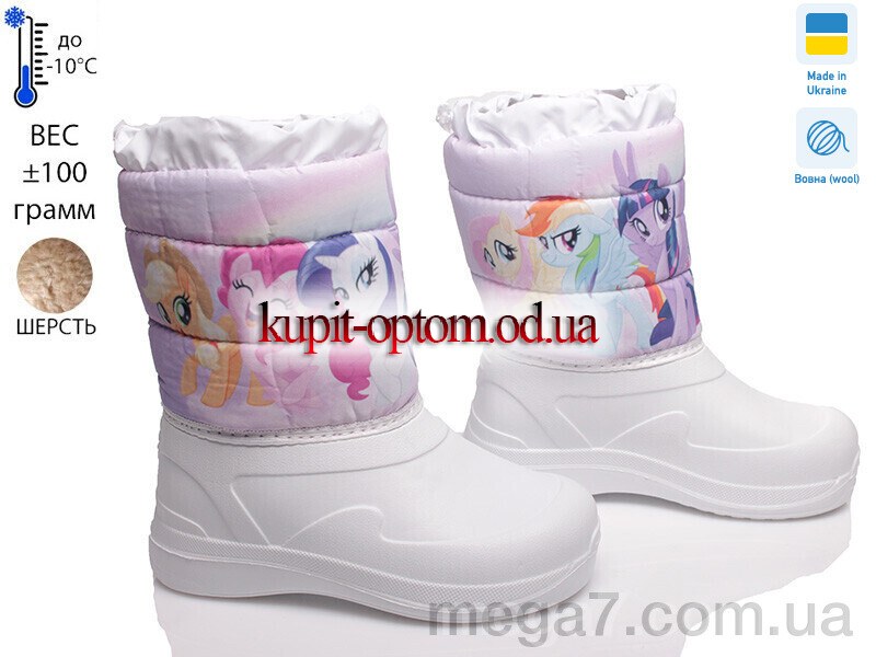 Цвет: белый; Материал изделия: плащевка; Размерная сетка: 28-34; Материал подкладки: натуральная шерсть; Материал подошвы: EVA; Страна: Украина; Сезон: зима; Пол: дети; Тип: девочка;