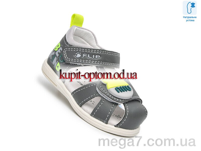 Цвет: серый; Материал изделия: искусственная кожа; Размерная сетка: 18-23; Материал подкладки: текстиль; Материал подошвы: пвх; Страна: Китай; Размер (на фото): 18; Сезон: лето; Пол: дети; Тип: мальчик; Материал стельки: натуральная кожа;